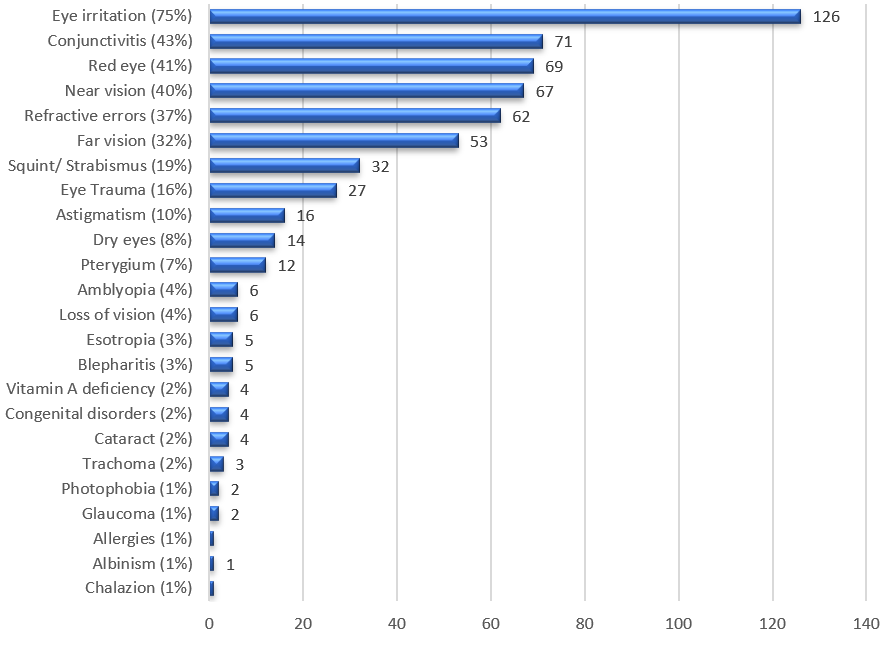 Childhood ocular morbidity encompasses a spectrum of eye diseases that negatively impact mental development, educational attainment, and quality of life. This study aimed to assess the prevalence and pattern of paediatric ocular morbidities in Rivers State between 2019 and 2023. A retrospective design was employed, including all cases of ocular morbidity recorded at Rumuokwurusi Model Primary Health Centre and Obio Cottage Hospital in Obio Akpor Local Government Area (LGA), Rivers State, from 2019 to 2023. Data were analyzed using IBM Statistical Package for the Social Sciences (SPSS) version 23. The findings revealed a prevalence of paediatric ocular morbidity of 94.9% (n = 167). The most common conditions included eye irritation (75%), conjunctivitis (43%), red eye (41%), near vision impairment (40%), refractive errors (37%), and far vision impairment (32%). Significant associations were observed between age and specific ocular morbidities, including conjunctivitis (p < 0.001), far vision impairment (p = 0.030), near vision impairment (p = 0.030), and refractive errors (p = 0.010). A significant association was also identified between sex and dry eye syndrome (p = 0.025). These results indicate that paediatric ocular morbidity constitutes a major public health concern in Rivers State and demands appropriate interventions to address the ocular health needs of the population. Improved eye health service delivery is recommended, including the integration of eye care services into school health programs and the primary healthcare system in Rivers State to ensure accessible and adequate ocular healthcare for children.